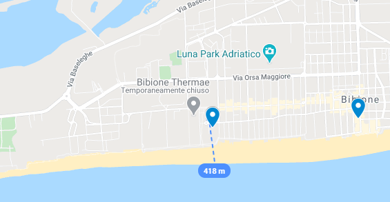 Il complesso è in una posizione splendida, fronte mare, centrale e a poca distanza dal complesso termale di Bibione Thermae.